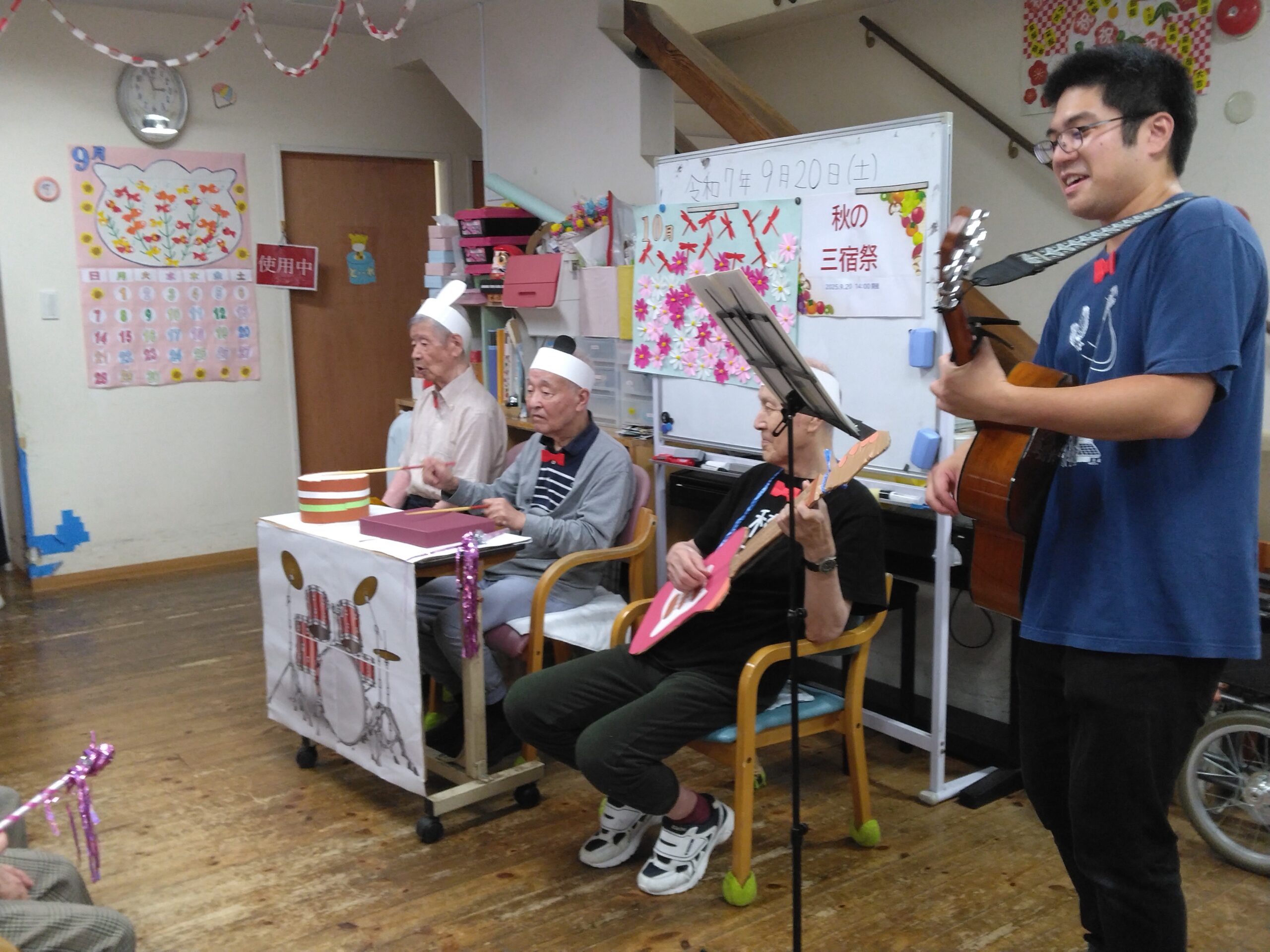 やっと秋らしくなってきました。 今日デイホーム三宿には、今大人気!! 「三宿オールスターズバンド」がライブを してくれました。
