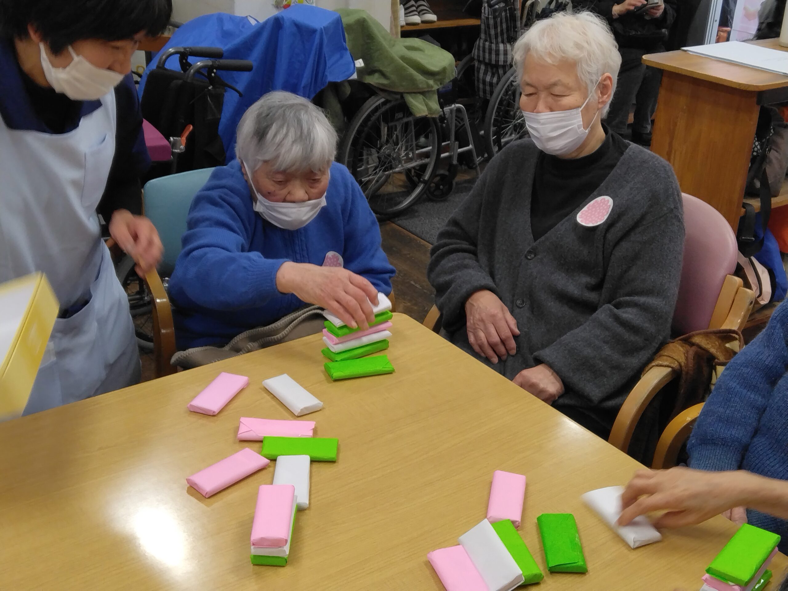 ゲームをしながら お雛様を作ったり
