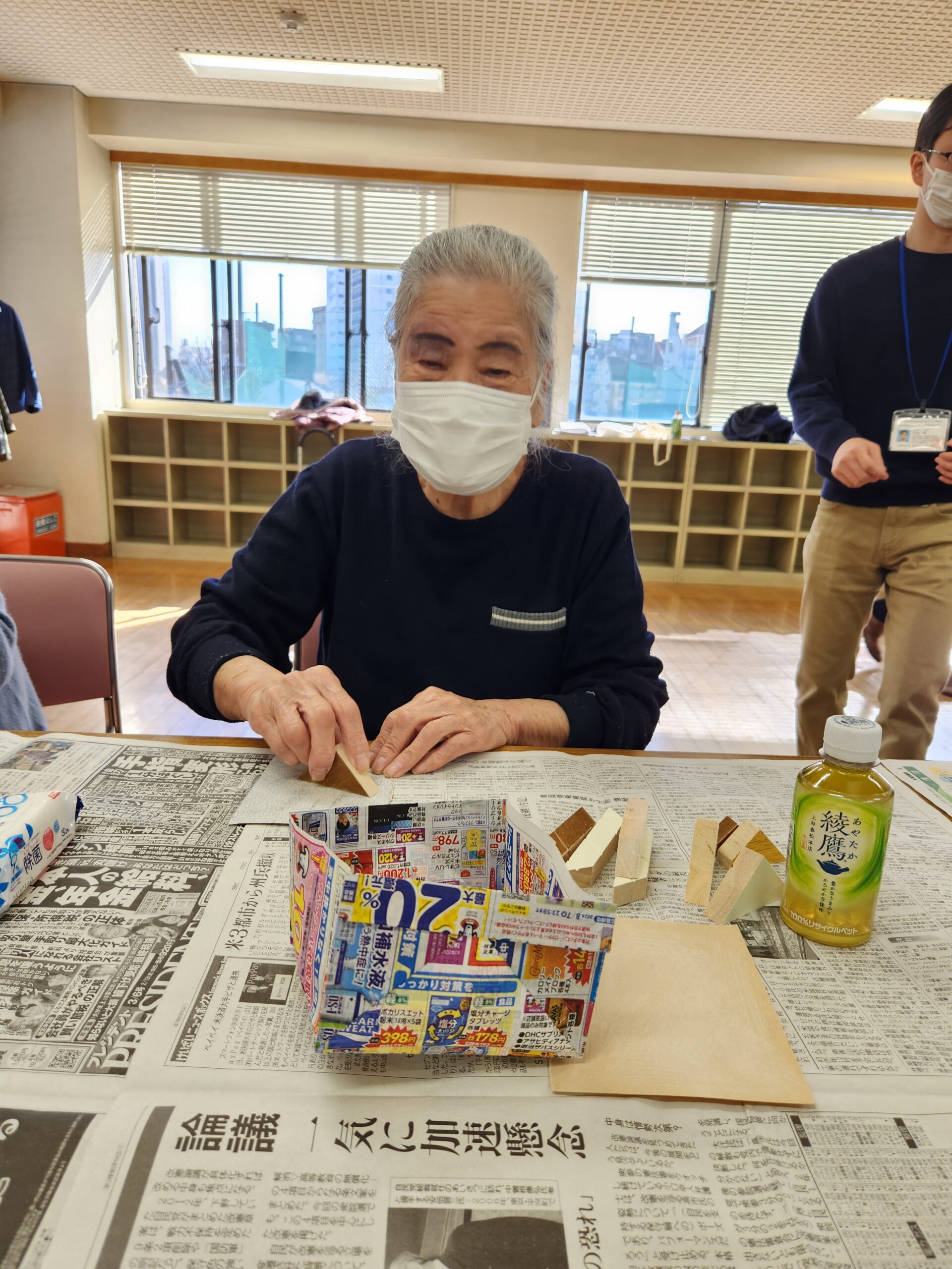 今日は「にんにん会」の積み木削りに