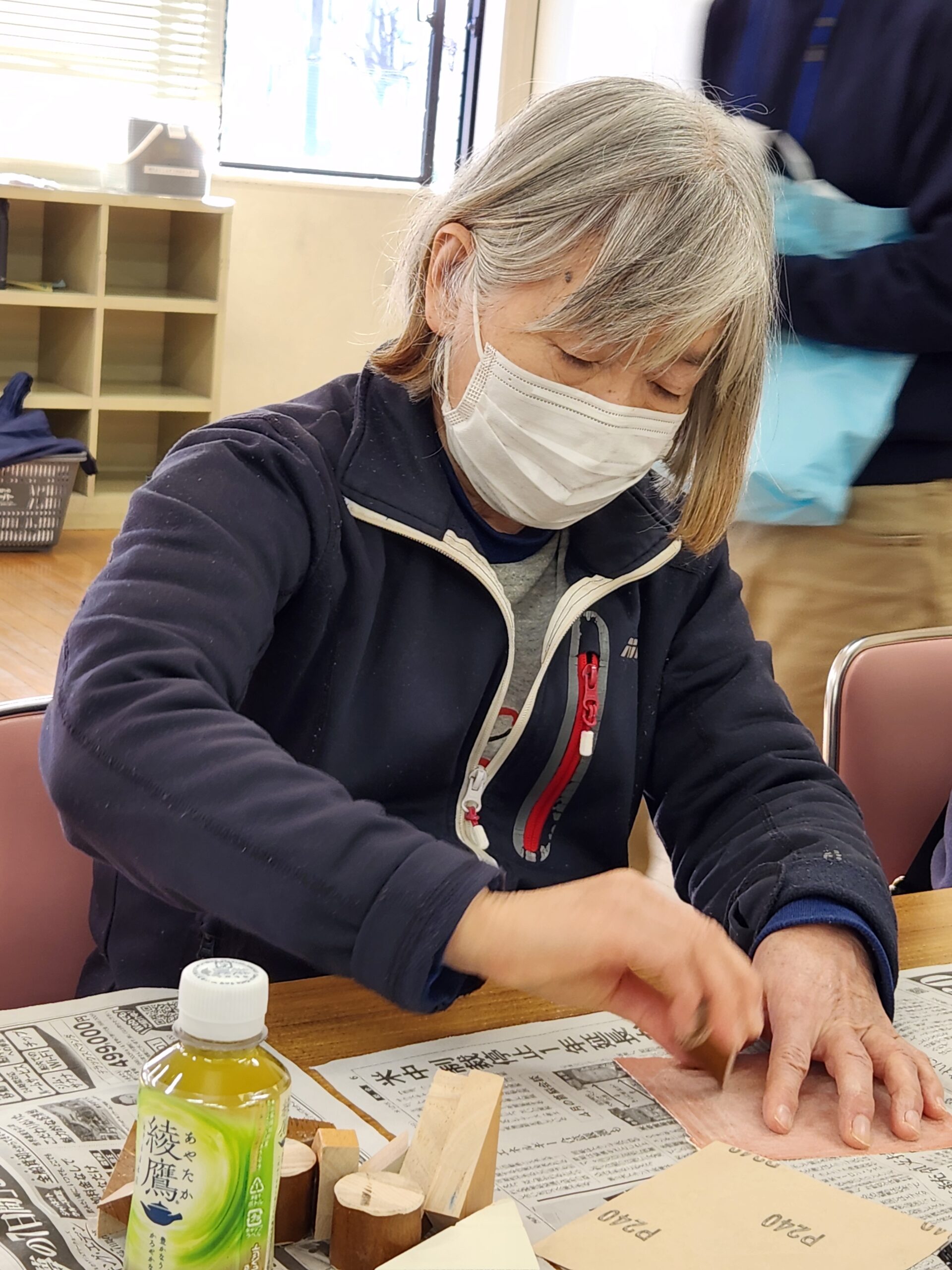 皆さん熱心に積み木を削っていました。