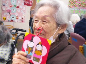今日は桃の節句『ひな祭り』です。 あいにくの天気ですが、 デイ三宿の利用者さんはとっても元気!! お雛様に負けない笑顔で ハイポーズ☆ おやつにひなあられ・甘酒を飲みながら 楽しいひな祭りを みんなで行いました。