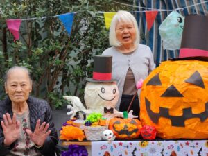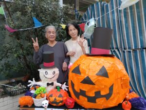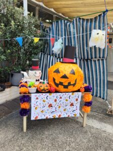 かぼちゃの映えスポットで写真をご夫婦で撮られたり・・