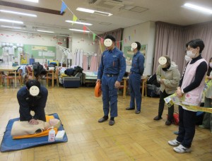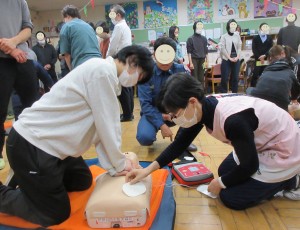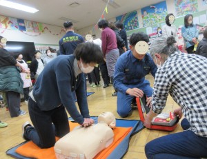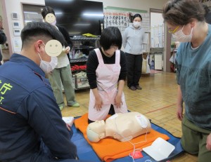 世田谷消防署の方を招いて、AEDを使った応急手当の方法を学び、