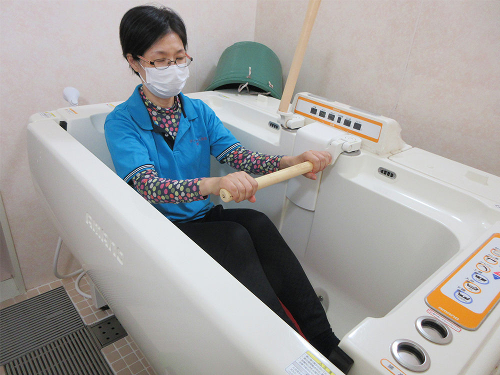 介護浴槽を導入し、お体の状況に合わせて介助をしています。
