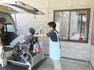 順番に送迎を行います。お帰りまでの時間も楽しいレク活動をして、最後まで楽しんでもらうようにしています。