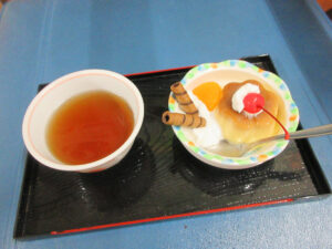 プログラムなどで体を動かした後は、お茶とおやつを提供しています。季節行事として自前の厨房から手作りおやつが出てくることもあります。