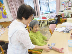 毎日看護師が常駐し、血圧、脈測定、投薬、健康管理を行います。皆様の健康状態を把握し、異常の早期発見と健康増進のお手伝いをいたします。きめ細やかな対応が喜ばれています。